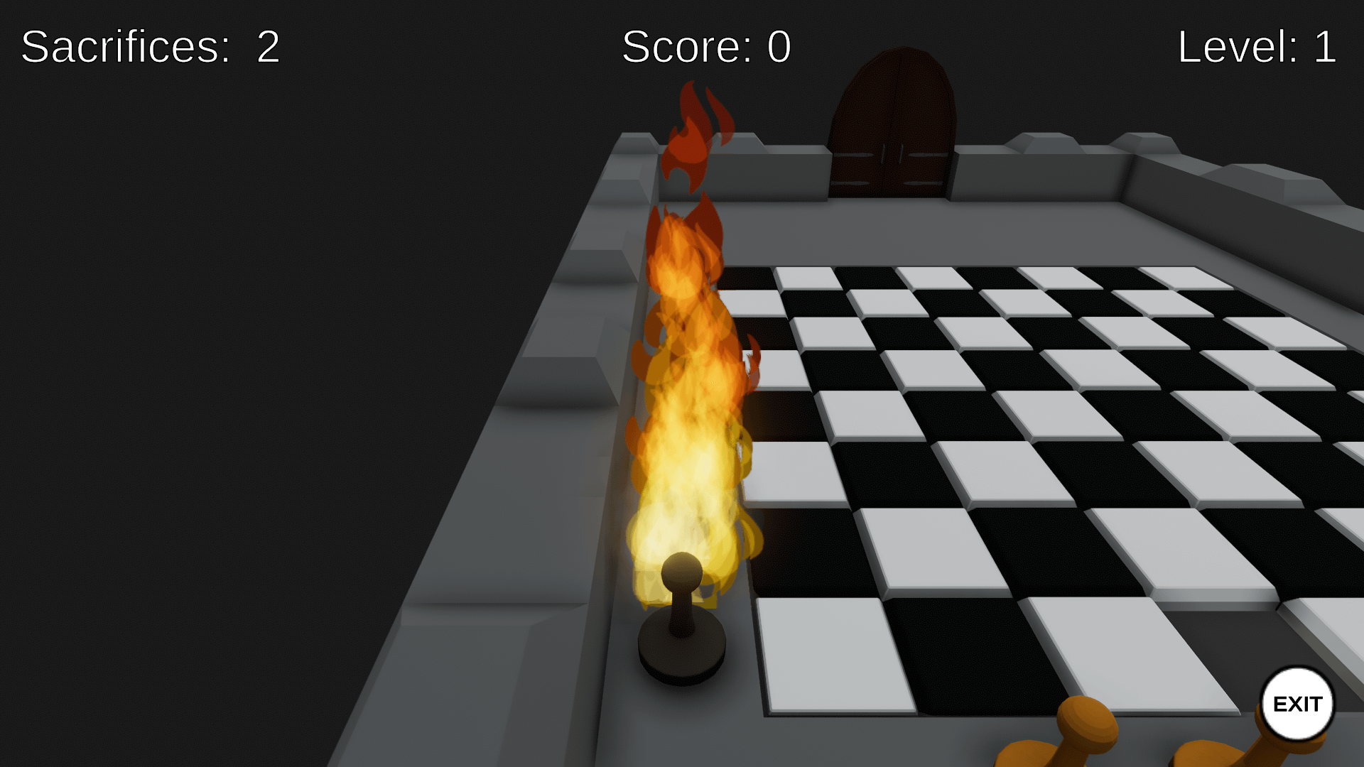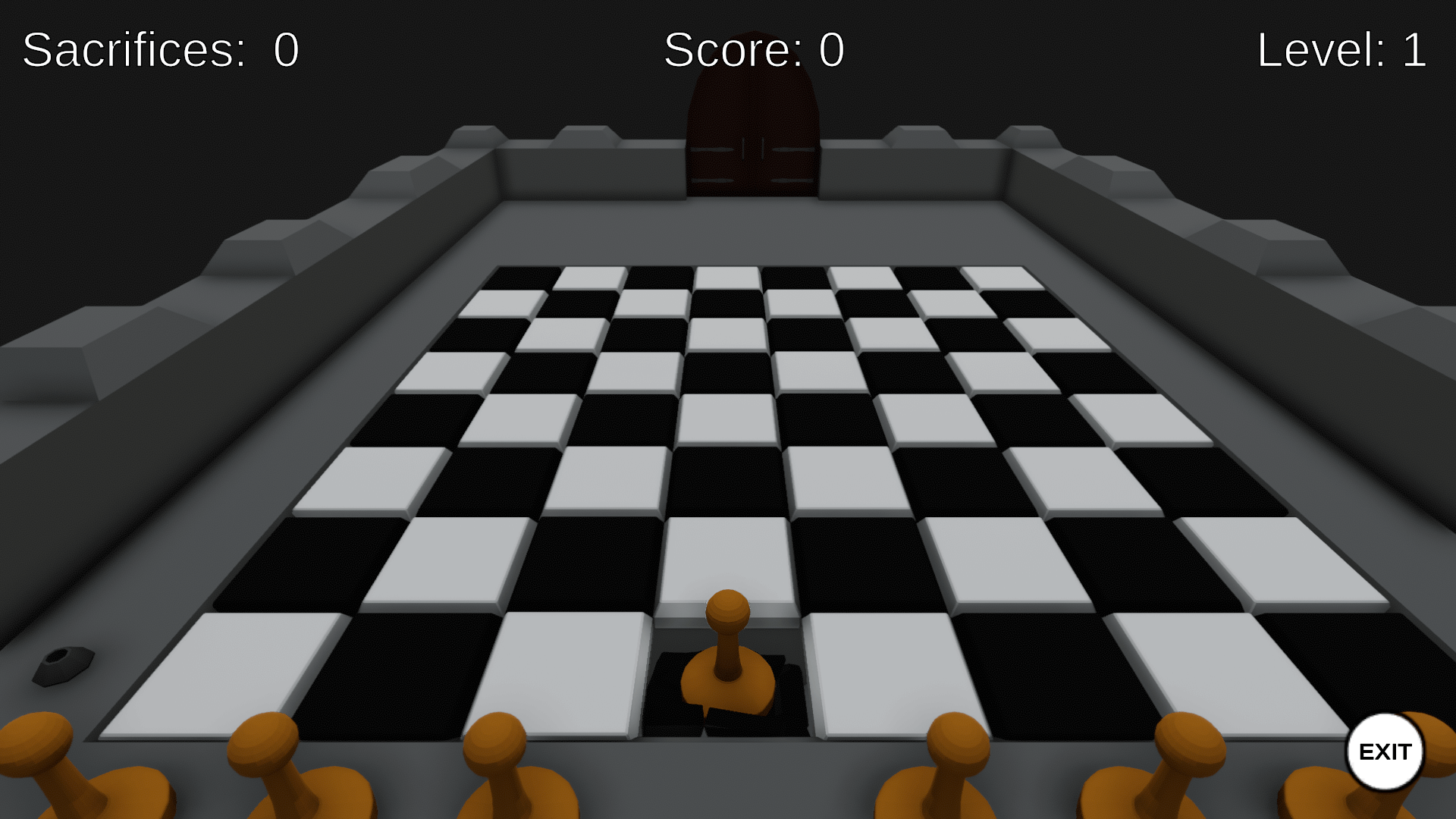 The theme of Ludum Dare 43 was "Sacrifices must be made", which directly inspired the core mechanic of the game. Players sacrifice chess pieces to uncover a safe path across a dangerous board for the King. What appears to be failure becomes strategic discovery.