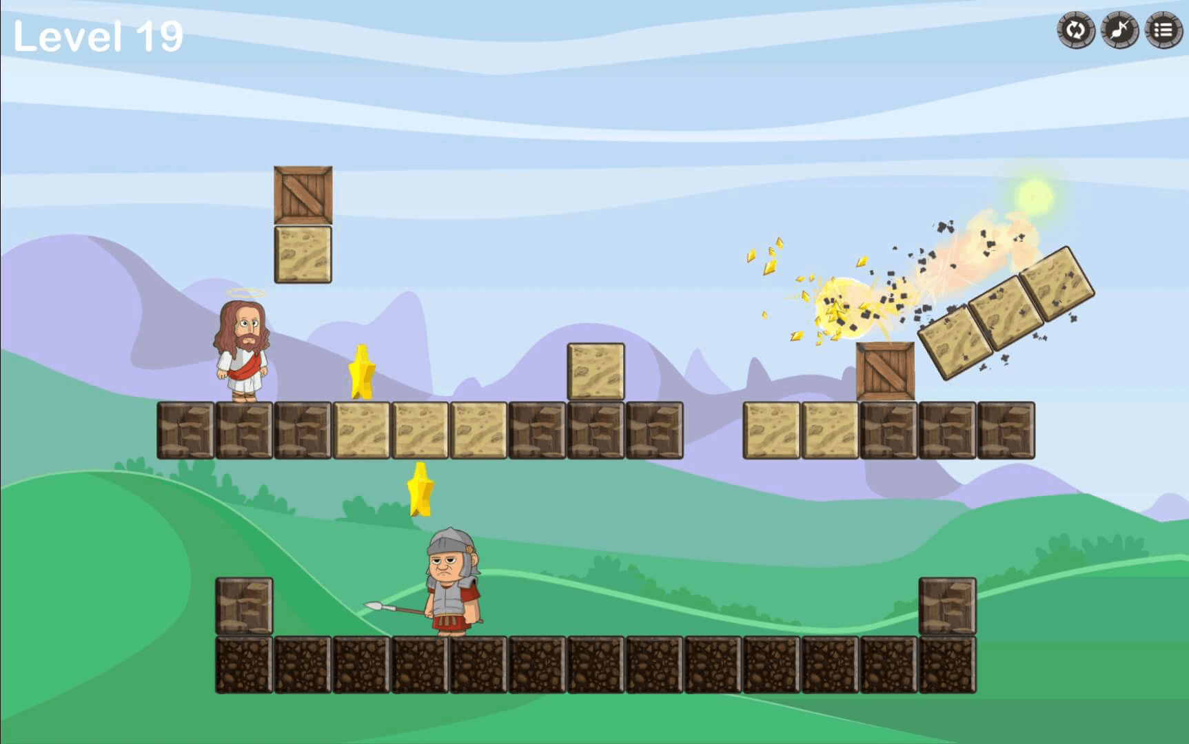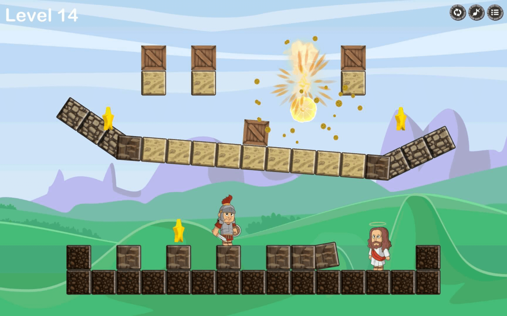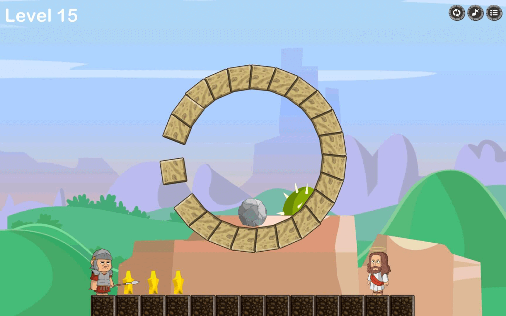 Save Jesus is a physics based puzzle game developed by Almighty Games. Players must guide a deadly rolling trap through carefully designed obstacle courses to prevent harm and complete each challenge.